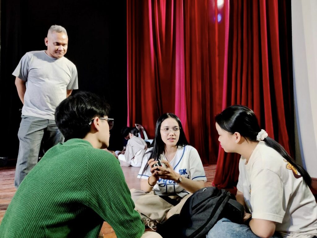 Khao Niew Lao Theatre initiated the first 2025 Vientiane Youth Theatre Festival to incubate the youth to learn puppetry arts as their creative way to tell their stories. The youth would have chance to write their stories and the selected 9 groups from 9 districts of Vientiane. MCH invited Helmi Fita to work with Khao Niew Lao Theatre and co-designed a 3-day workshop of puppetry arts, offering his experiences and knowledge creating, design, and theatre technology. He and Director of Khao Niew co-facilitated the training workshop to support the youth to make their stories into a new piece of puppet show and presented in the 2025 Vientiane Youth Theatre Festival.